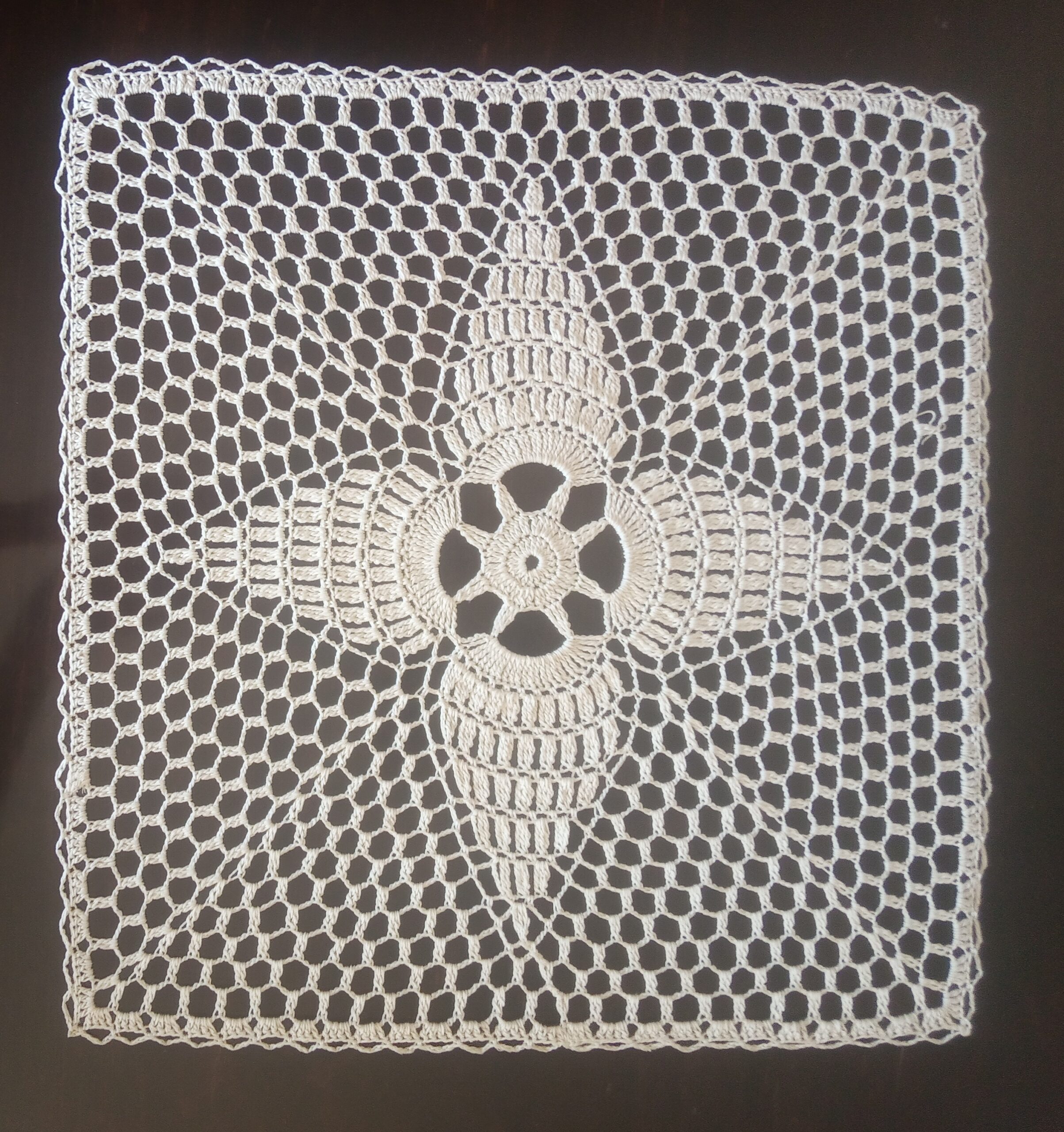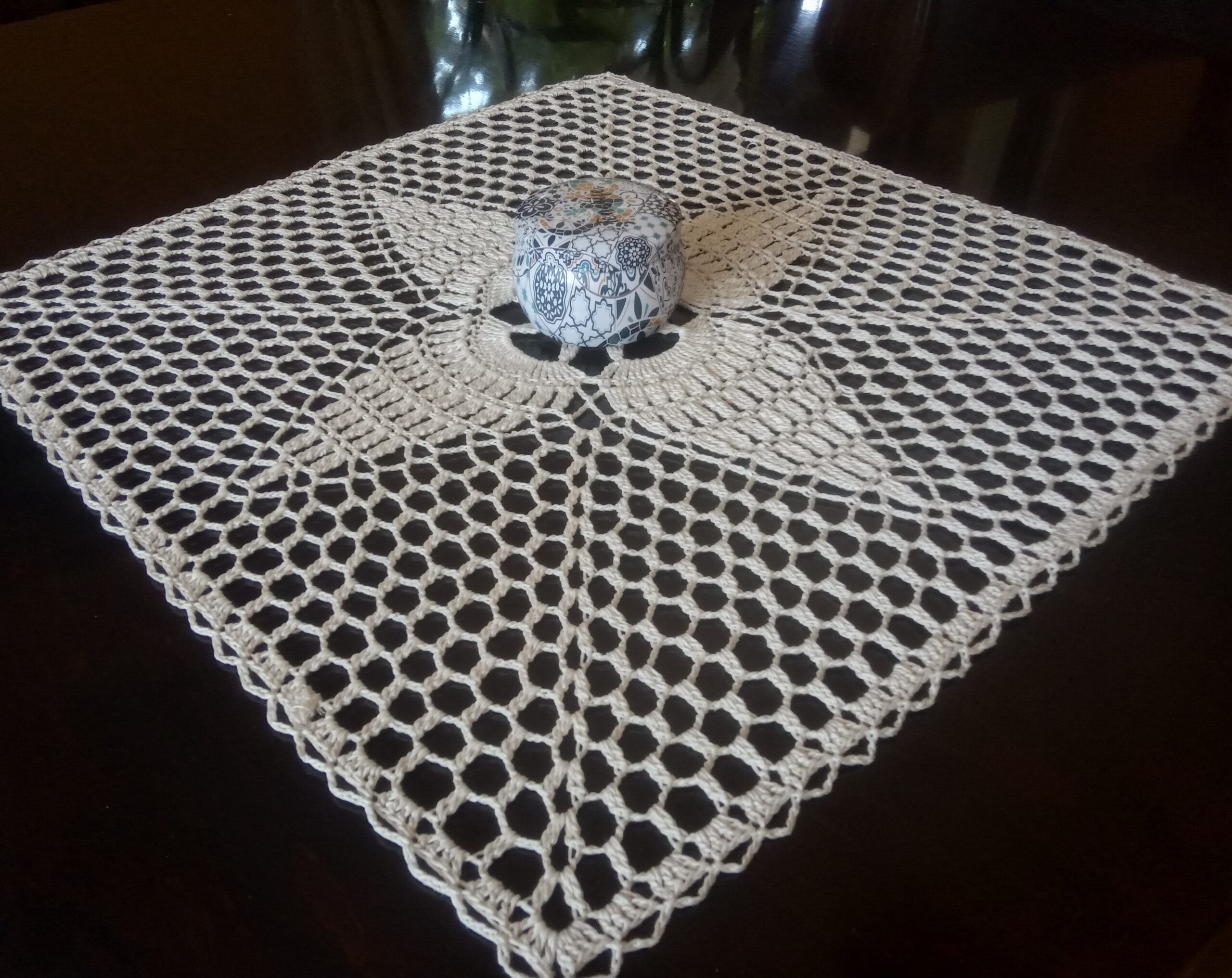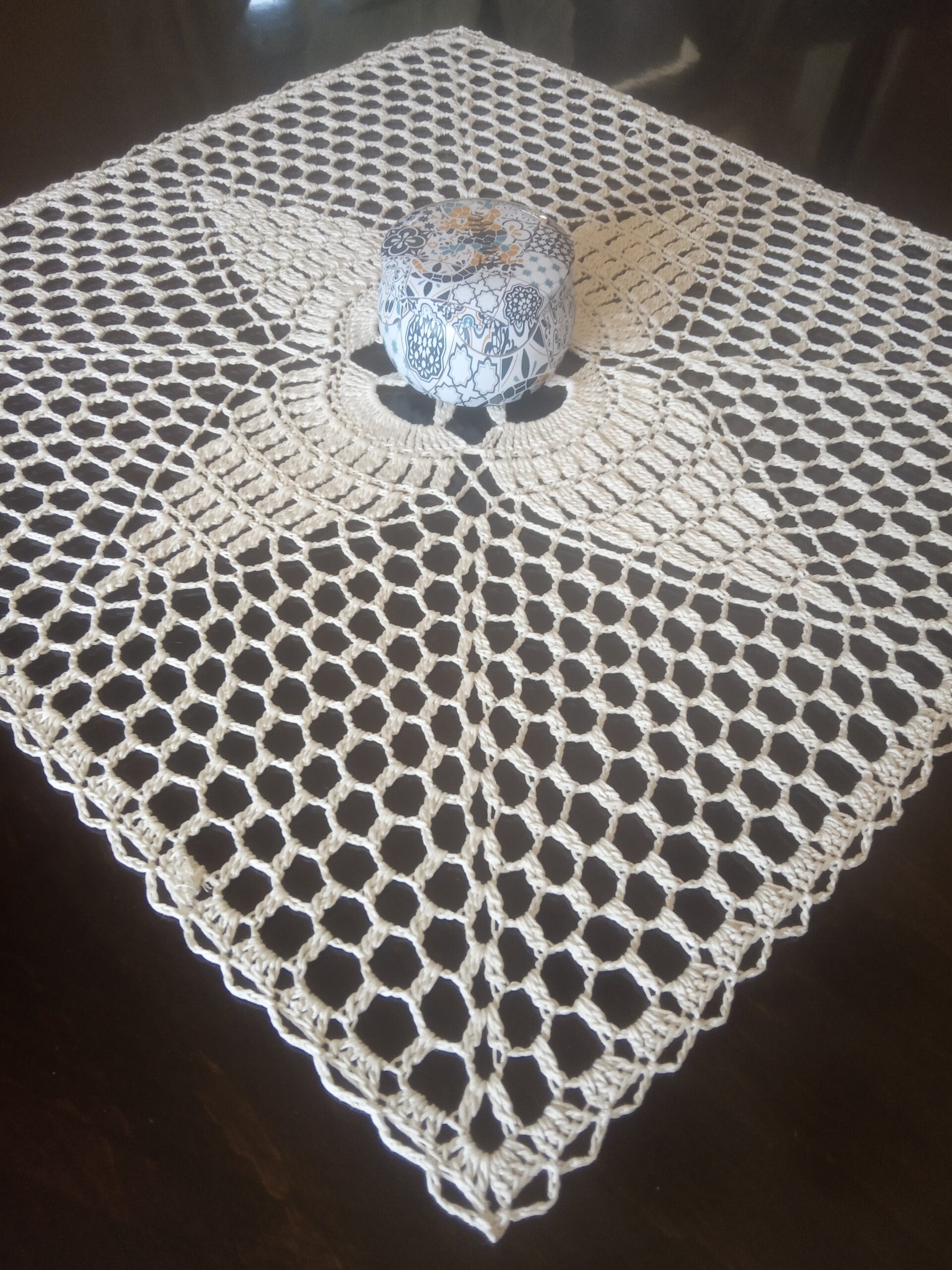 Gustowna serwetka wykonana w całości ręcznie z kordonka w kolorze ecru.